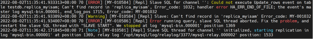 setsql_log_bin=0; delete from replica_myisam where id=1; setsql_log_bin=1;