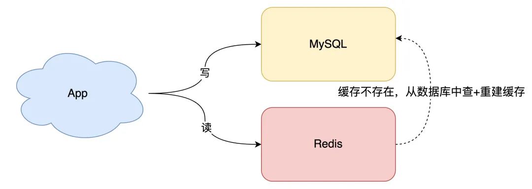 读请求先读缓存,如果缓存不存在,则从数据库读取,并重建缓存