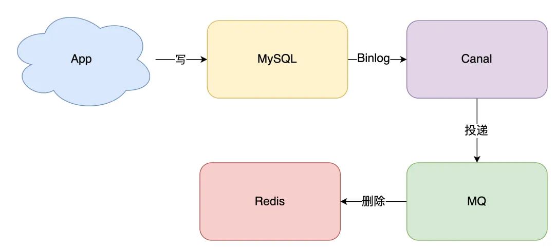 拿 MySQL 举例,当一条数据发生修改时,MySQL 就会产生一条变更日志(Binlog),我们可以订阅这个日志,拿到具体操作的数据,然后再根据这条数据,去删除对应的缓存。