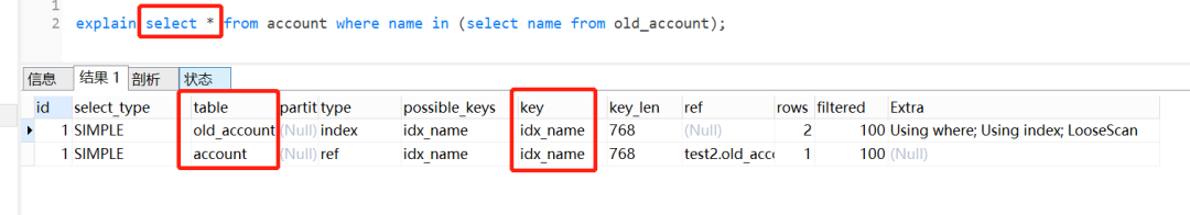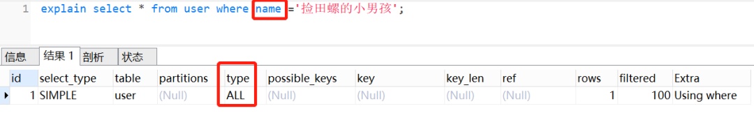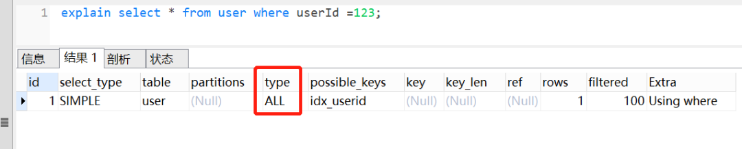 一般来说,我们需要重点关注type、rows、filtered、extra、key