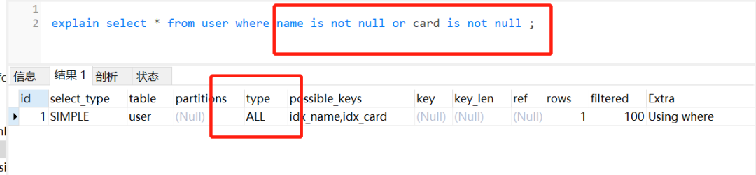 , 要注意一下哈,因为这个可能因为数据量问题,导致索引无效。