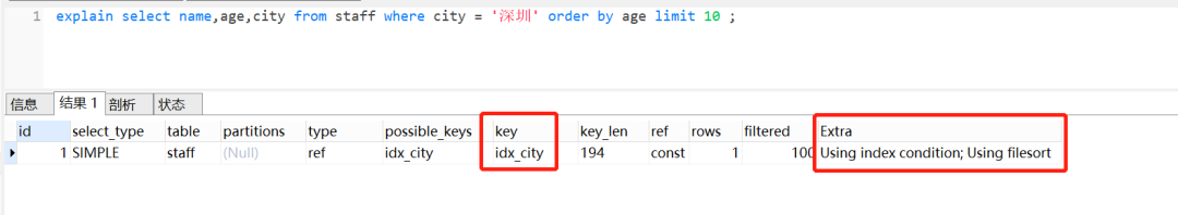 使用文件排序,效率会低一点。我们怎么优化呢?