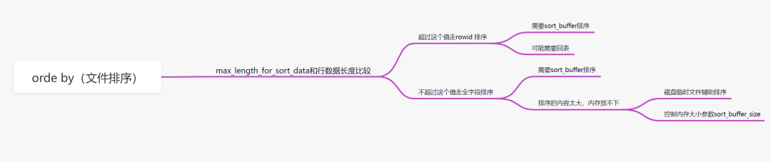 - 如果是全字段排序,需要查询返回的字段,都放入 sort buffer,根据排序字段排完,直接返回